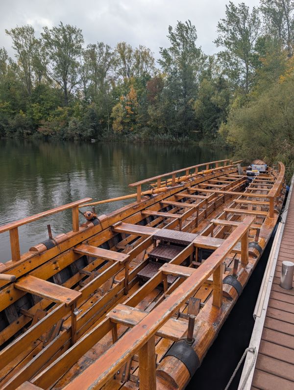 Keine Angst! Zwei erfahrene Schiffsführer leiten uns beim Rudern an. Auf das Alter und die Leistungsfähigkeit der Mannschaft wird Rücksicht genommen. Mindestens 12 Ruderer (über 16 Jahre) werden benötigt, je mehr, desto besser. Das Reiseteam verlässt sich auf seine Mitreisenden! Bitte auf unterschiedliche Witterungsverhältnisse einstellen. Eine Kopfbedeckung ist ggf. sinnvoll. Handschuhe bzw. Fahrradhandschuhe zum Rudern sind empfehlenswert! - 12:00 Uhr - Fahrt zum Mittagessen mit Rheinüberquerung auf einer Fähre